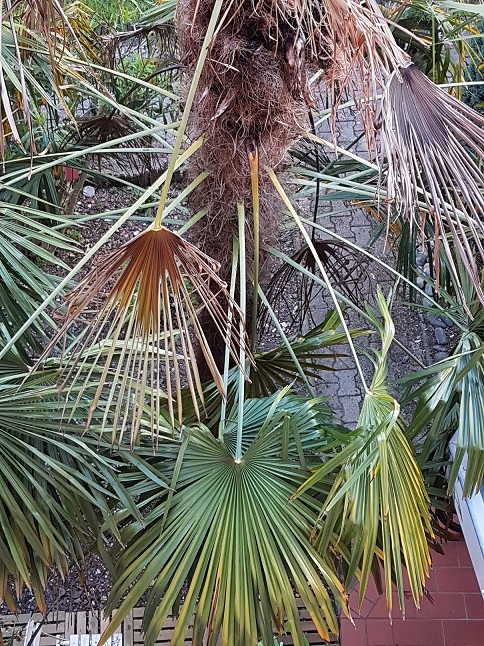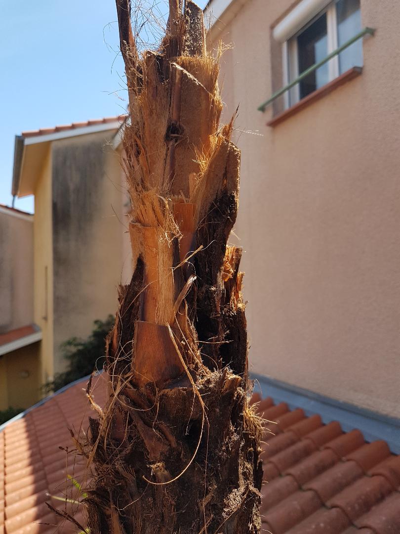 Palmes anciennes qui ont échappé aux ravageurs, mais elles n'ont pas de bourgeon , donc pas de pousse à espérer à mi-hauteur.