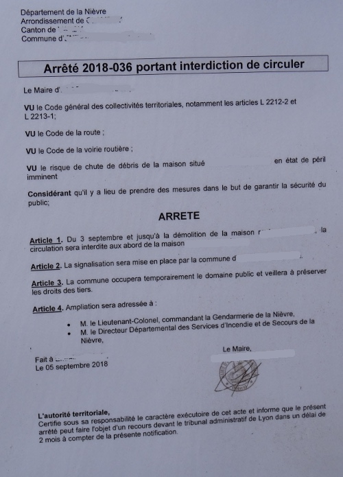 voici un exemple d’intervention des autorités vis-à-vis d'une maison mettant en danger les passants sur la voie publique