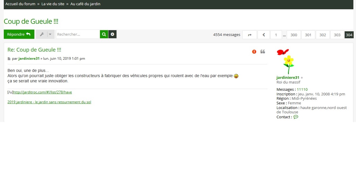 Jardinière 31 écrivait ce lundi 10 juin, (juste au sommet de cette page), je cite