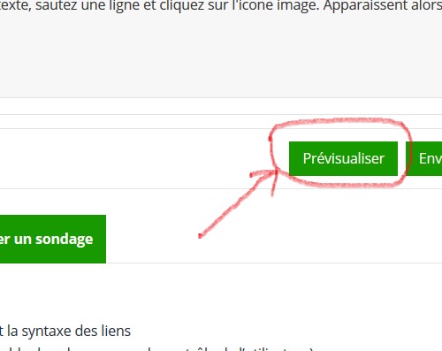 4- Remontez quelques lignes plus haut et cliquez sur "Prévisualiser", vous allez découvrir votre texte formaté, avec, au dessous, votre photo,