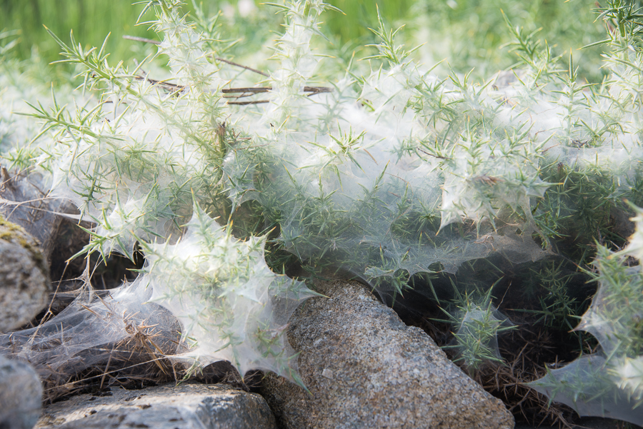 La toile de tes envahisseurs, Danae, me fait penser à un article lu cette semaine où il était question d'une toile d'araignée de 300 m de long sur les bords de mer en Grèce.