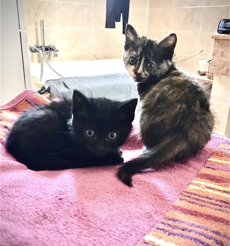 Les chatons avaient 1 mois et demi en réalité quand on les as attrapés par la faim ils se sont sevrés prématurément on pense mais ils sont réellement domestique ils ronronnent des qu’ils nous voient et ils sont très affectueux, c’est incroyable leurs transformations ( au début on se faisait cracher dessus quand on approchait la main)