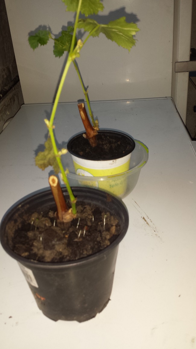 Je déterre mon sujet pour donner quelques nouvelles de mes boutures à l'eau. Alors, comme indiqué, mes boutures ont bien poussé, avec plusieurs tiges et de belles racines. Au fur et à mesure de leur croissance j'avais introduit du marc de café dans la flotte. Voyant que la première bouture avait bien réagi au marc, j'ai poursuivi petit à petit sans pour autant dépasser les 10 % d'apport. Depuis 10 jours, ces boutures sont dans un terreau léger et là miracle elles se portent à merveille avec plein de feuilles supplémentaires qui sortent. Pour le moment, c'est réussi !!! Aussi, j'y ai ajouté des terricules noirs tout frais récupérés dans le paillage au pied du petit figuier. Je n'arrose pas trop. Autre précision, contrairement aux tentatives précédentes (qui avaient toutes échoué lors du passage au terreau), cette fois j'ai placé les boutures dans ma buanderie en rez de jardin non chauffée qui affiche 15 ° max. Pourvu que ça dure, deux vignes Italia que je vais dorloter et planter plus tard, un jour au soleil.