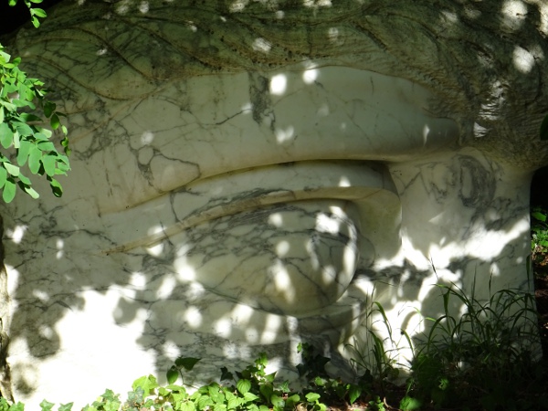 dans le parc, un œil de marbre (il doit y être en permanence)