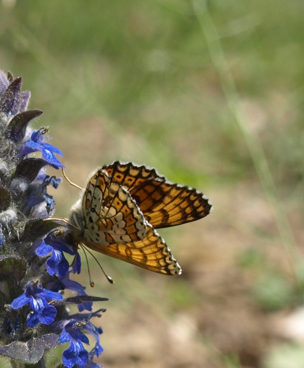 Melitaea athalia ? Sur Ajuga reptans , bugle rampant