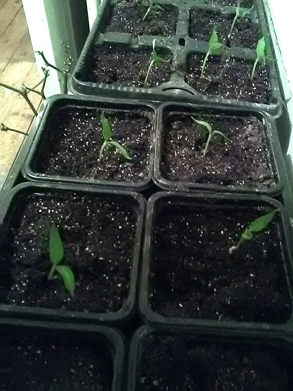Les 21 petits piments d'Espelette mis en scottex le 19/1 et en godets le 31/1. Ils sont simplement derrière une fenêtre exposée est dans une pièce pas trop chaude ni froide. Pour l'instant ils donnent pas l'air de filer.