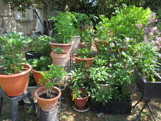 donc maintenant je les cultive en pots assez gros, engrais tomates, arrosages fréquents en cas de chaleur. je conserve certains d'une année sur l'autre (végétarien difficile à germer, Tabasco, par ex), en les rempotant ou en les mettant en PT la 2° année