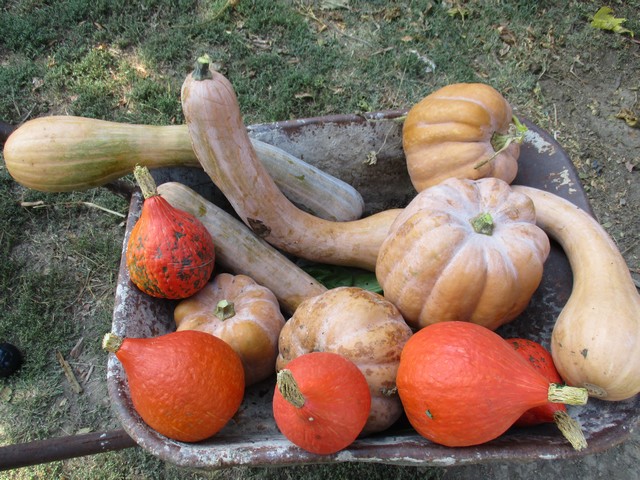 il y a des potimarrons, des longues de nice et une soit- disant butternut provenant de graines données .. pas grave on verra bien le gout