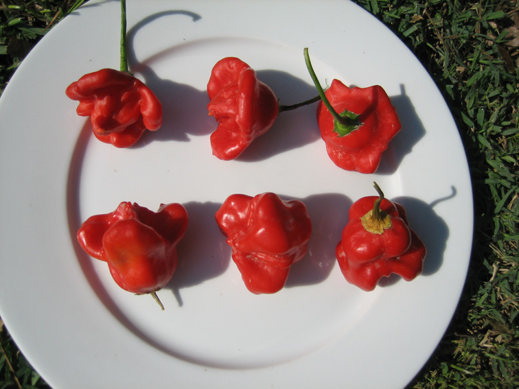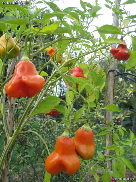 Celui du haut est excellent farci au thon et au câpres, je crois que son nom est red cherry et les autres à gauche, je les appelle bonnet d’évêque, on peut les conserver longtemps frais après la récolte.