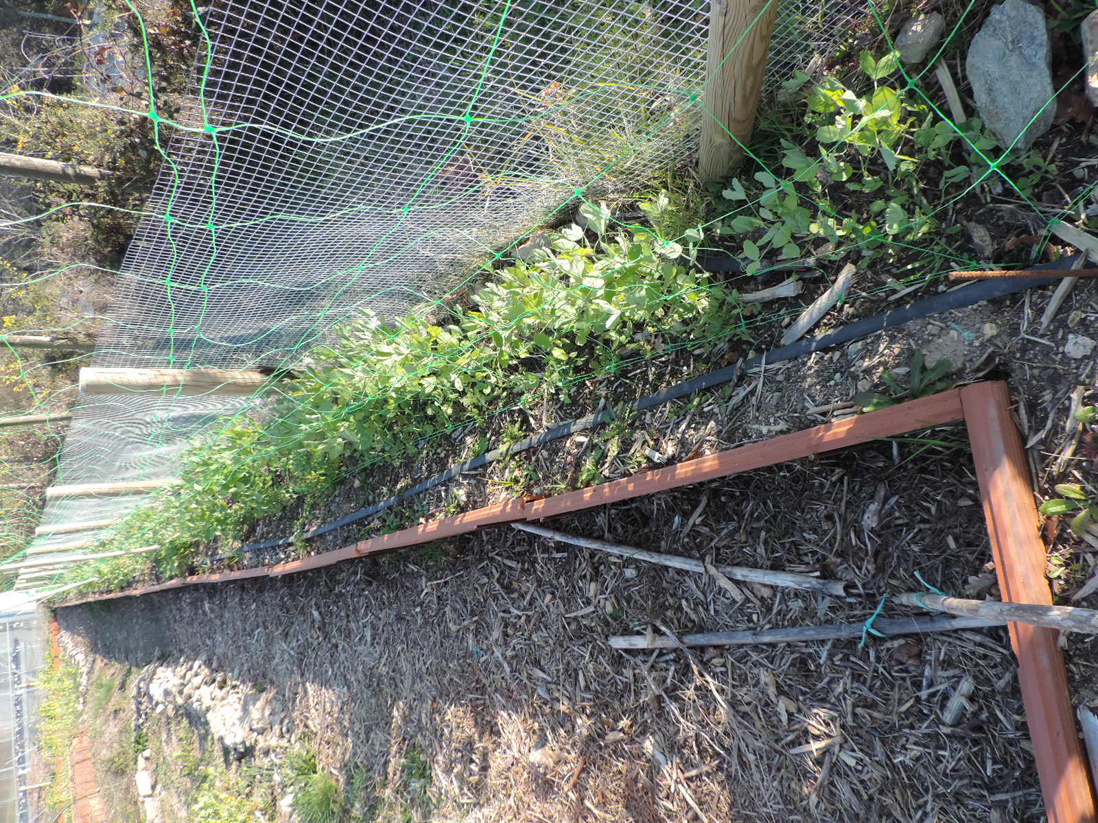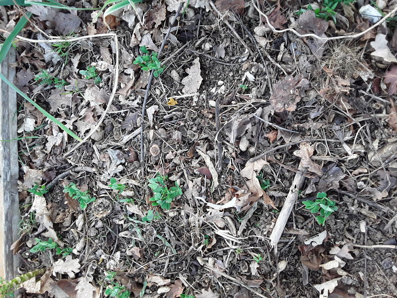 aujourd'hui encore une belle journée, meme si elle est bien fraiche! j'ai replanté un cassis ou un groseiller , j'avais du planter une branche un jour de taille, et elle avait de belles racines! reste a sentir les feuilles pour determiner de quoi il s'agit!