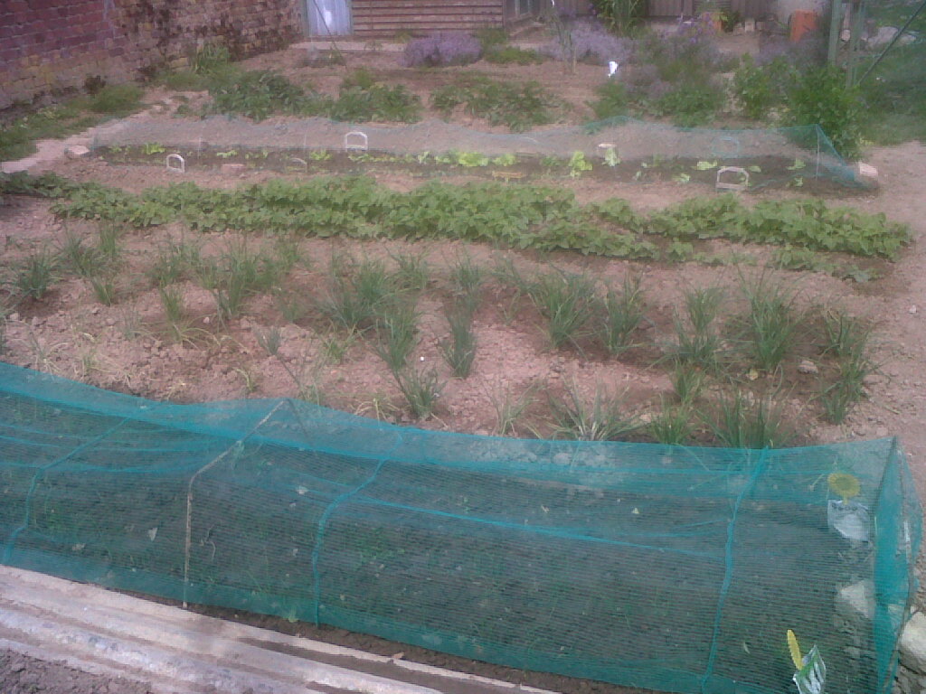 En place 2 routes d'oignons 1 route d'échalote 2 routes de petit pois repiquage de pieds de courges et potimarrons