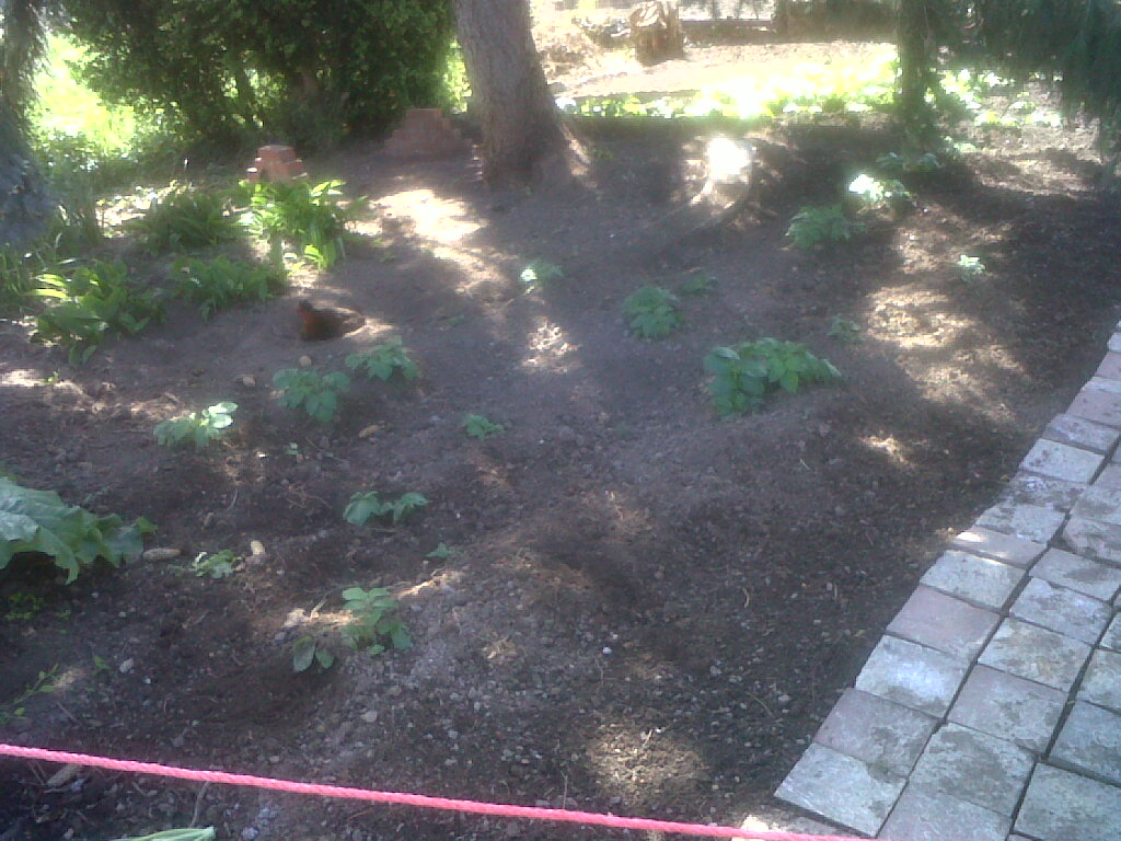 Après avoir défriché un peu de terrain cause confinement j'ai fait la plantation de mon plan de pommes de terre Apolo une variété précoce sans grand espoir de rentabilité sous un sapin ?