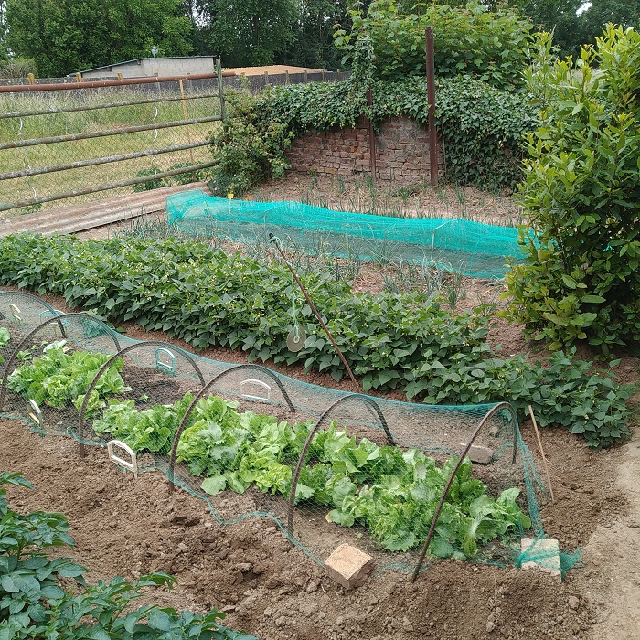 Petit potager semi de navet deux routes sous tunnel contre les chats