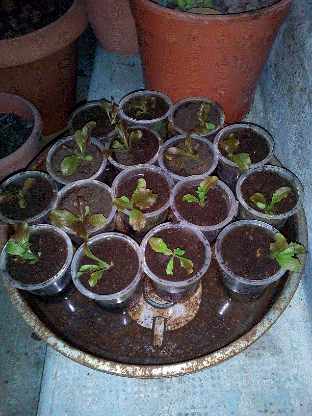 Hier j'ai récupéré quelques plants de salade qui se sont ressemés un peu partout dans le potager, je vais essayer d'en récupérer encore quelques uns avant de préparer la terre.