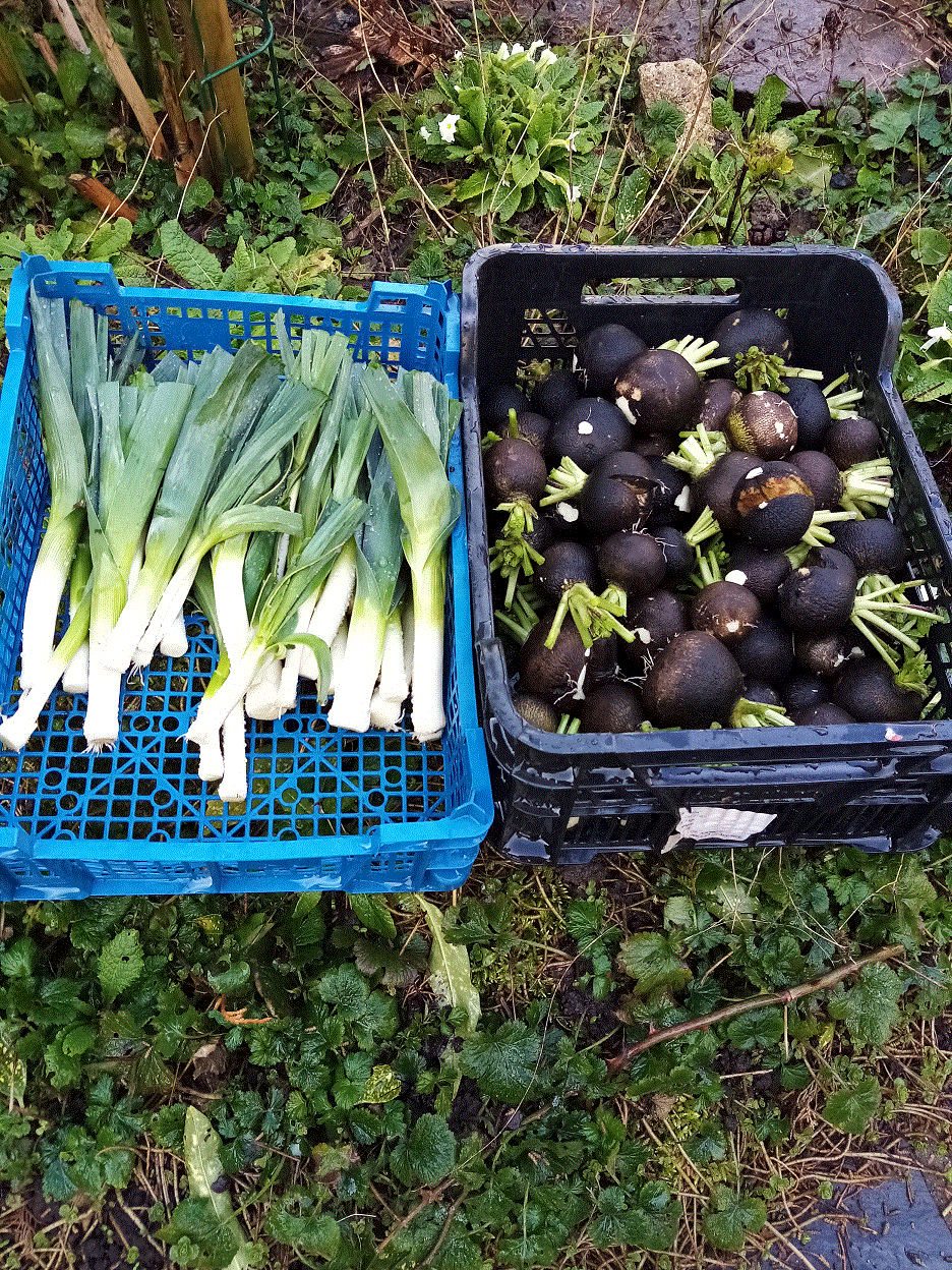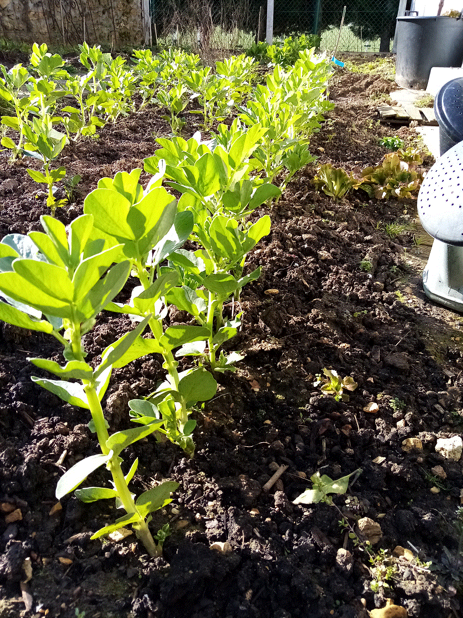 Et pendant ce temps, le potager se réveille L'amandier aussi Les choux continuent leur production de pousses Le fèves profite des beaux jours Les petits pois son semés La récolte de mâche se termine Arrachage des derniers poireaux et radis noirs La patate douce est mise à germer Bonne journée à tous !