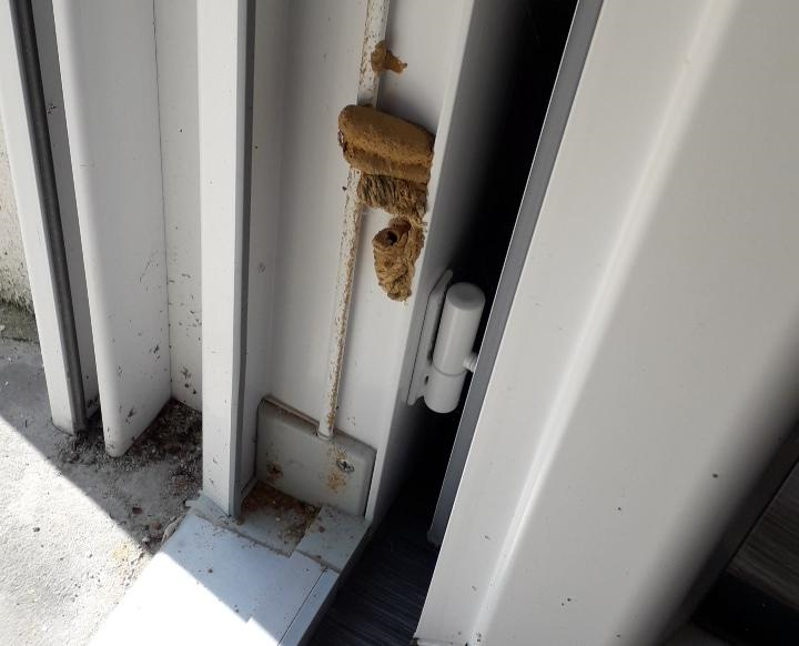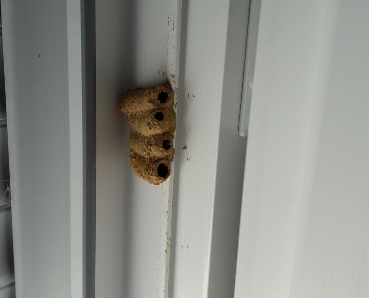 besoin de vos lumières pour connaître le type d'insecte qui peut faire de tels nids dans un encadrement de fenêtre??