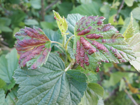 Certaines feuilles de mon cassissier présentent des taches rouges et boursouflées... quelqu'un aurait-il une idée de ce que ça peut être, et comment faire pour lutter "contre" ?