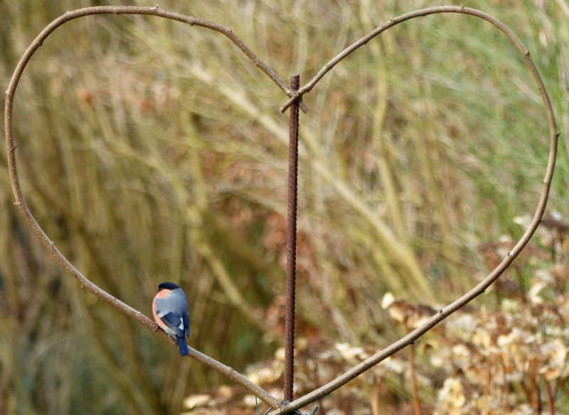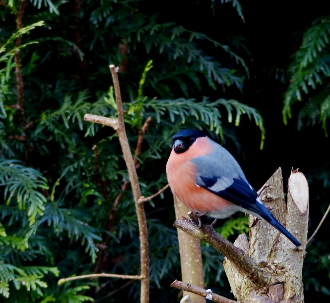 Un support spécial pour mes visiteurs ailés... Faut bien que les chutes d'élagages de noisetiers servent à quelque chose hein... Les Bouvreuil pivoine en profitent !!