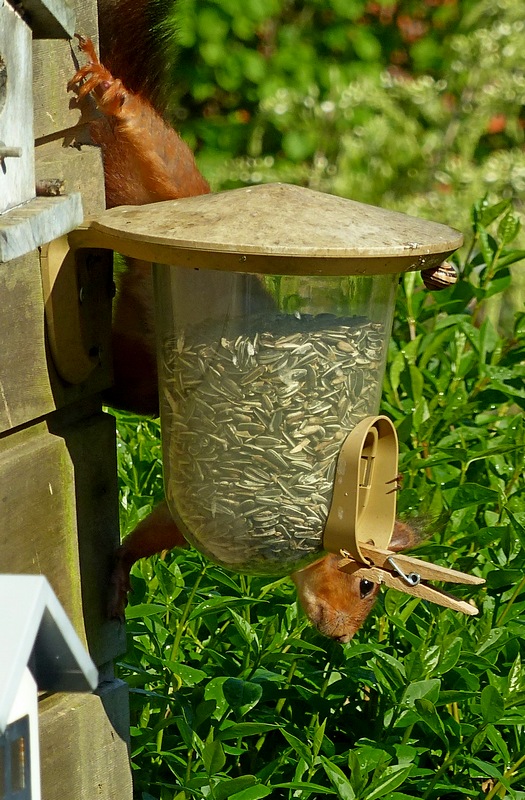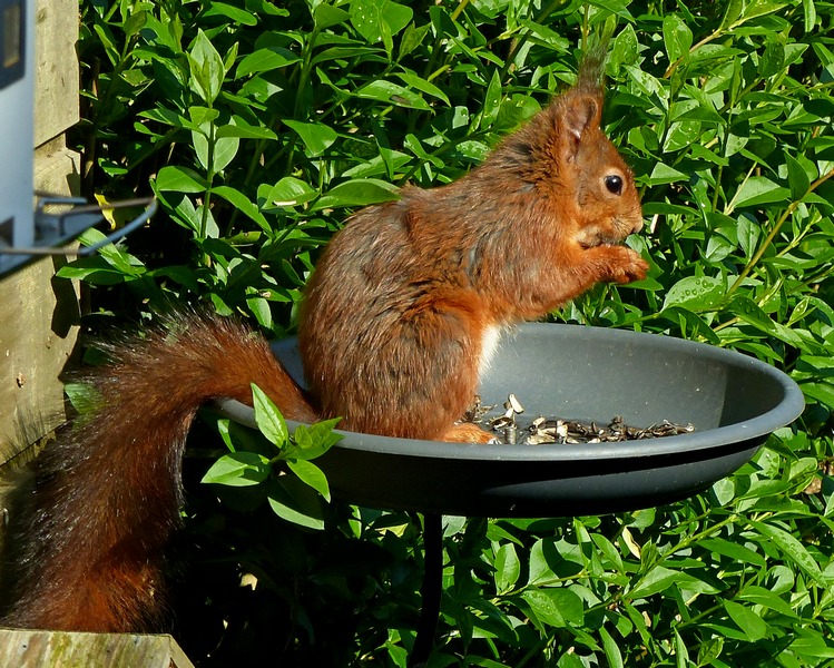 Avec un superbe noyer dans un jardin voisin et quelques noisetiers chez moi et aux alentours, je voyais de temps à autre des écureuils roux qui sautaient de branches en branches dans le fond de mon jardin... ils ne se rapprochaient jamais !