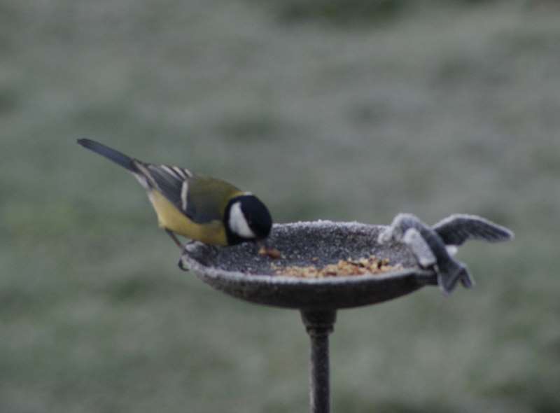 Un ciel de plomb, de la neige et beaucoup de monde aux mangeoires et sous les mangeoires....