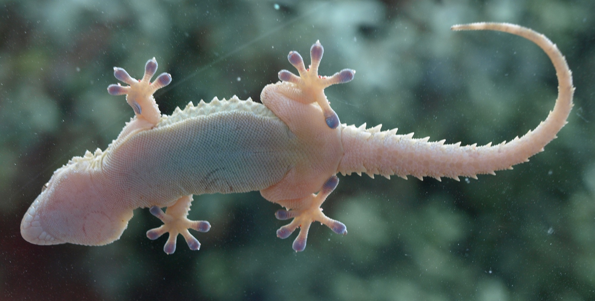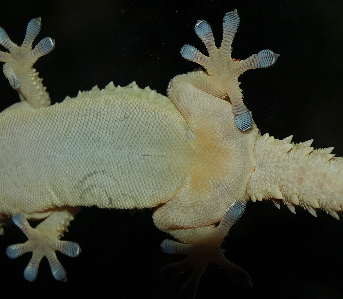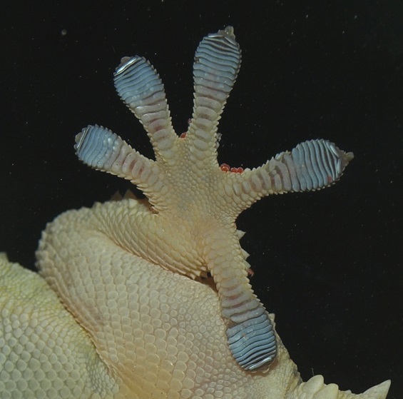 Prise de vue originale; il grimpe aux carreaux à l'aide de ses petites ventouses bleues.....?