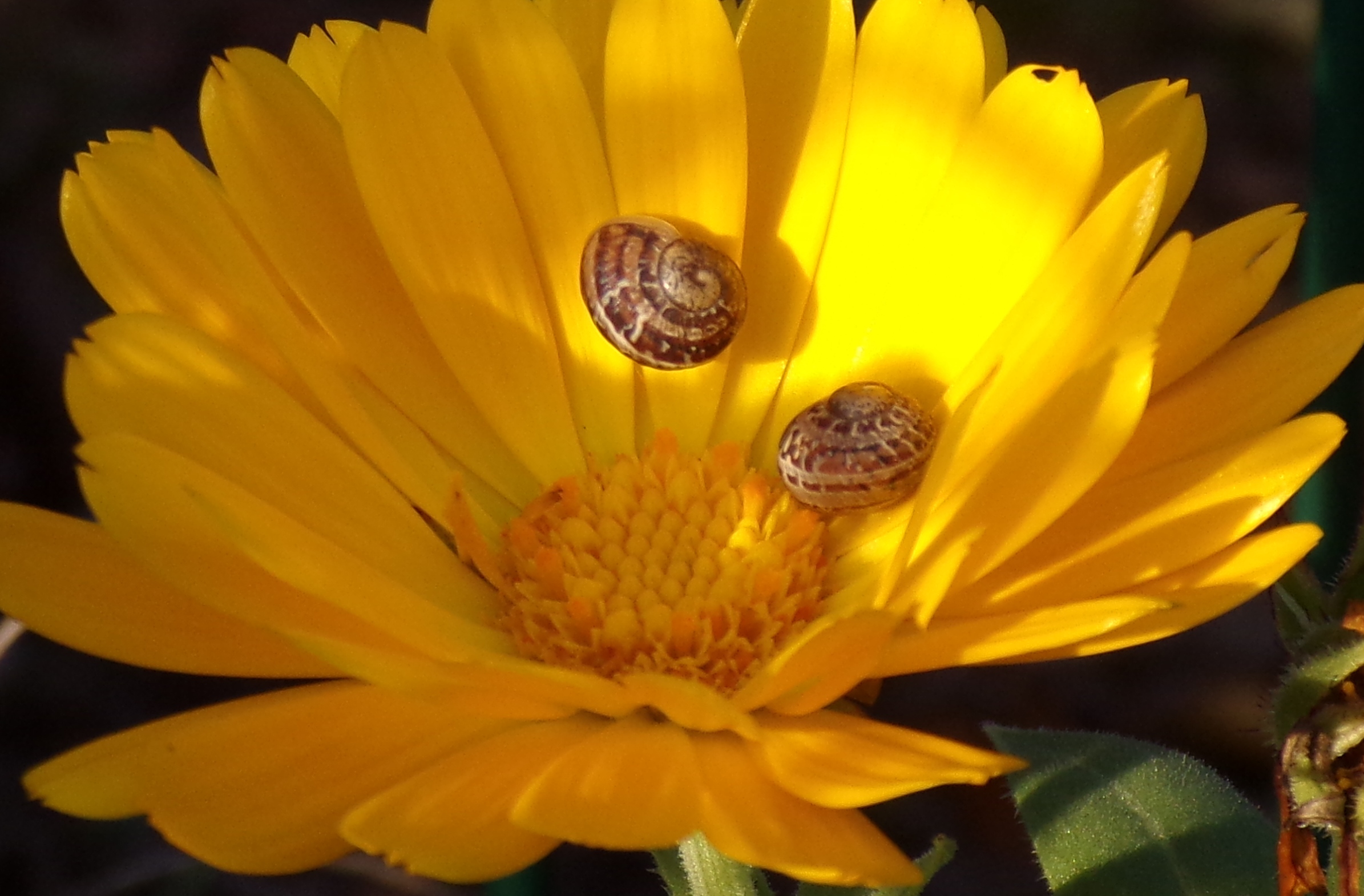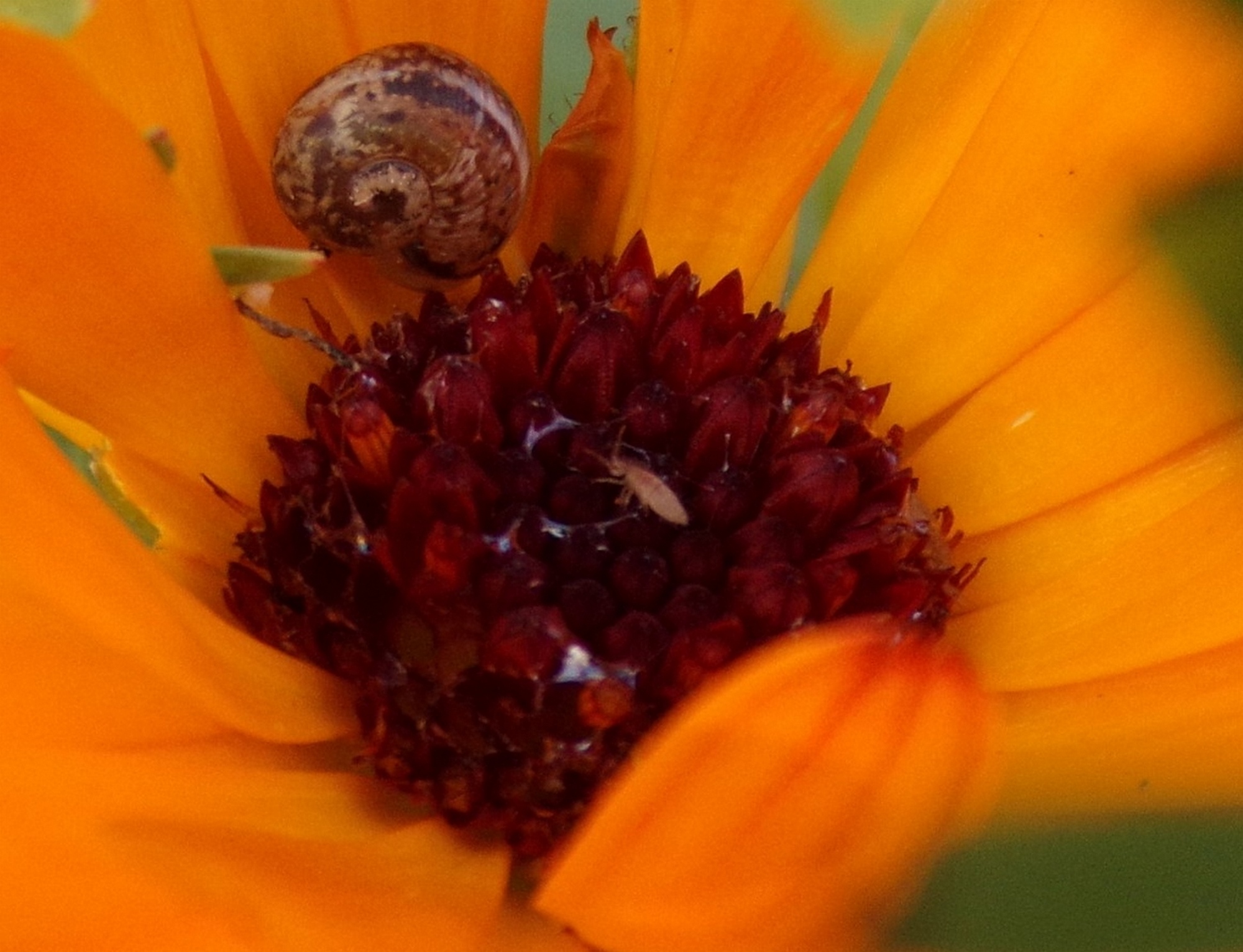 Pour les escargots, la seule chose que je puis dire est que j'en ai déjà vu sur les fleurs.