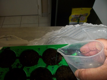 on arase ! humidification du terreau, cela permet un tassement! je sème une graine. ensuite on rajoute du terreau on ré-humidifie et tout dehors !