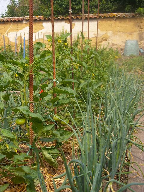 J'ai mis en jauge 16 pieds de tomates (cocktail) en attendant que leur emplacement définitif soit prêt.