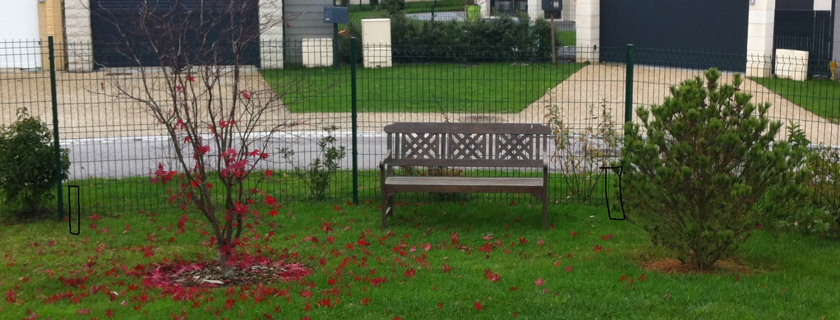 Il ne me semble pas possible d'en mettre sur la bande le long du mur (là où sont les cyprès, bande de 1,80 m de large + 0,40 de mur), donc j'envisage :