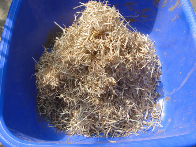 J'ai fait un essai en broyant de la paille de bois, un matériau qu'on trouvait pour combler les espaces dans les cartons d'autrefois.