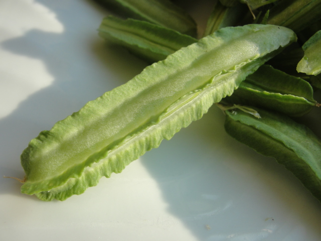 Attention à récolter les siliques lorsqu'elles sont jeunes, mesurant environ 3 cm, sinon il y a trop de fils à mâcher. J'ai dû apprendre