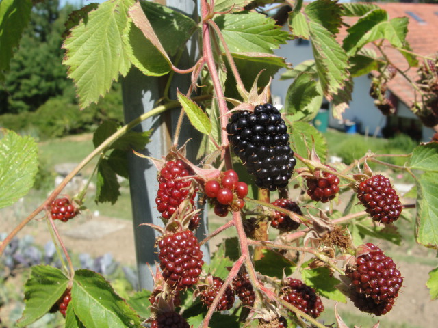 Actuellement j'ai constaté qu'ils ne vont plus sur les raisinets. J'ai d'abord pensé que c'était parce que les arbustes en culture sauvage sont masqués par des hautes herbes et des fleurs. Mais c'est surtout pour une autre raison: les mûres commencent à mûrir et elles sont plus sucrées que les raisinets. Les gourmands les ont repérées