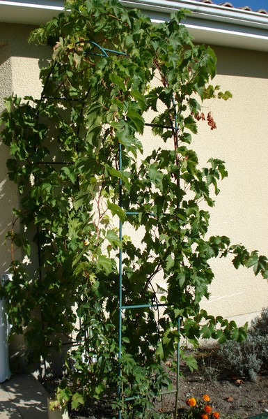 Juste quelques nouvelles de mes pieds de vigne plantés au printemps. Ils ont énormément poussé depuis et sont montés à plus de 2 mètres.