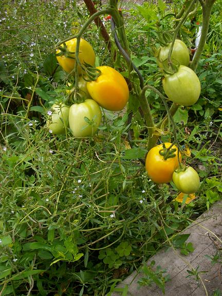 aujourd'hui j'ai taillé, désherbé, et les plants sont toujours bien chargés! dans l'espoir d'un été indien 8)