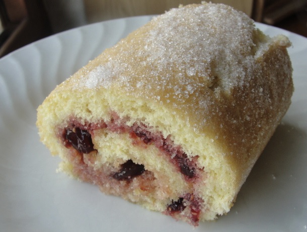 Eh bien rien de semblable pour l'instant mais un gâteau roulé à la confiture de cerises ... ... qui est particulièrement bonne parce que je suis presque allé jusqu'à la limite de la caramélisation.