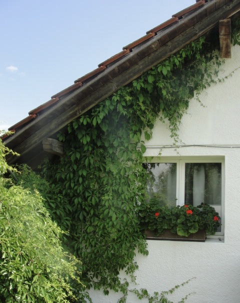 ... la vigne vierge que je veux décrocher du coin de la maison avant qu'elle ne masque entièrement la fenêtre de la chambre à coucher.