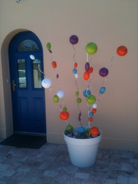 Un truc comme ça, c'est plus original et plus coloré, relativement simple à mettre en œuvre je pense (ça doit être des boules en polystyrène)