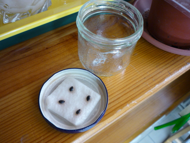 Perso, je pense que cela revient au même car j'ai enlevé le pot pour les besoins de la photo. L'humidité ambiante reste la même quand le pot est fermé. C'est plus facile pour moi ensuite d'extraire une graine germée d'un scotex dans un couvercle plutôt qu'au fond d'un pot.esox10 a écrit :Pour tes passiflores, il faudrait mettre le scotex dans le pot (et non le couvercle) et le recouvrir d'un film alimentaire.