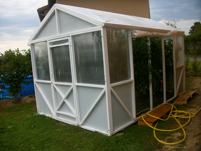 et amélioration de ma petite serre. papa étudie un système de fenêtres coulissantes , pour les 6 grandes ouvertures latérales. il voudrait soit pouvoir ouvrir par moitié, haut ou bas pour l'aération. Aussi un extracteur d'air solaire sera installé au pignon Est. Comme cela le toit serait parfaitement étanche. ça évolue doucement. Elle a résisté à un vent de 105 km/heure !