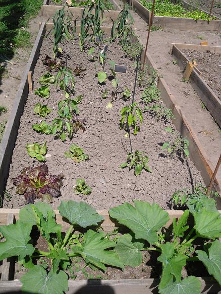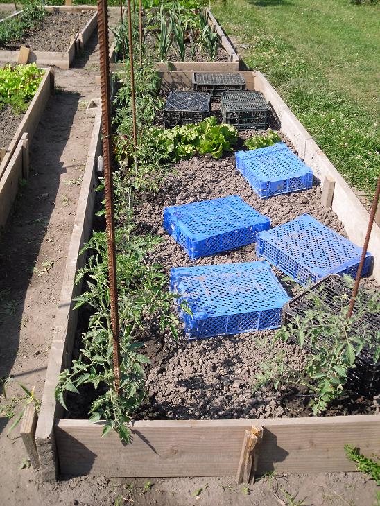 cette planche sera recouverte par les melons! les plançons, semés en direct ,sont encore au stade de 4 feuilles. je les protège des oiseaux , et du soleli trop ardent, en ombrant un peu! semsi de mi-mai ,récolte pour fin aoüt!