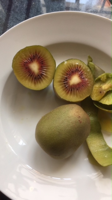 je viens de récolter mes 2 premiers kiwis rouges sur mon unique plant femelle