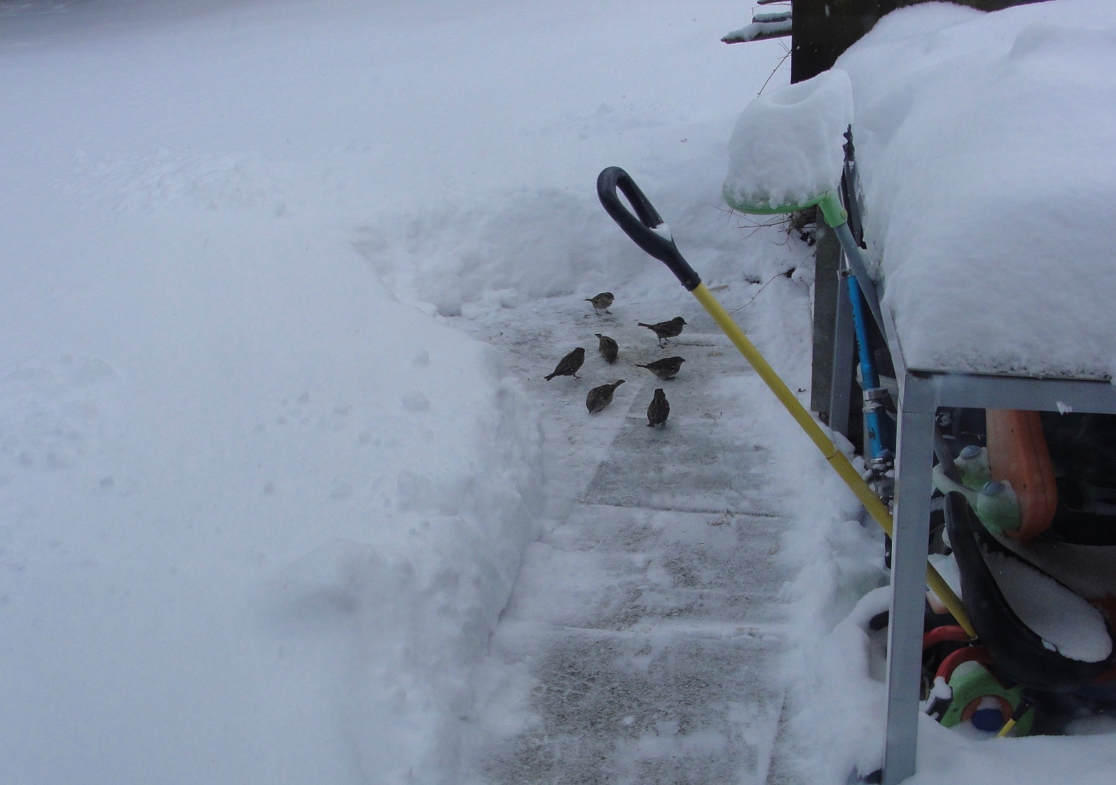 Il y a tout d'abord un gros club de moineaux - ils ont pris possession des haies environnantes et nous amusent avec leurs activités incessantes.