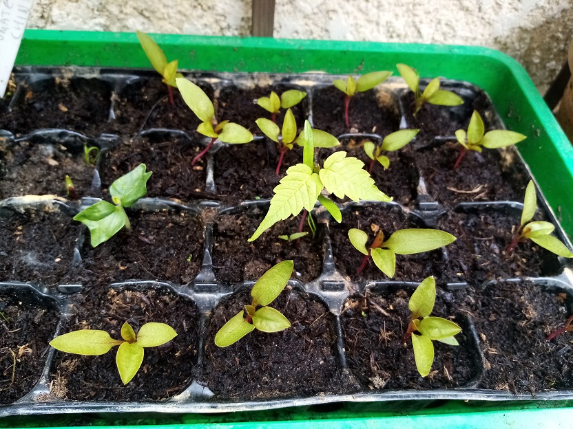 Alors faut que je vous explique que pour faire mes semis j'ai récupérer du terreau qui c'est formé tout seul au fond du jardin. Donc je suppose qu'il était plein de graine. j'ai fait beaucoup beaucoup de semis vu que j'ai le temps comme tout le monde lol et dans tous mes semis je retrouve les petites plantules rouges qu'on voit sur les photos j'aimerai savoir ce que c'est avant de les jeter.