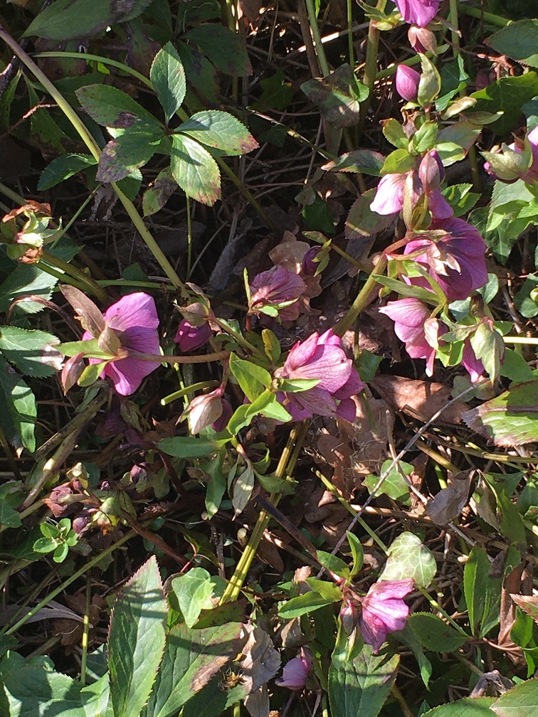 pour profiter pleinement des fleurs des hellébores, je coupe tout le vieux feuillage à ras de terre, elles en referont un tout neuf dès qu'elles ont terminé de fleurir.