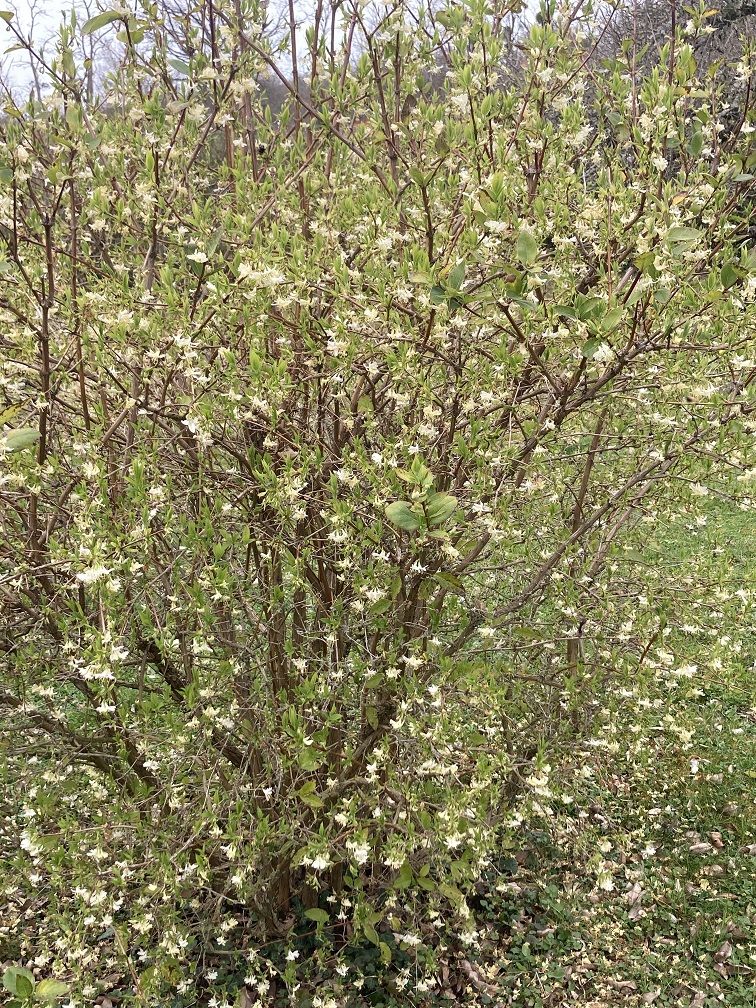 Mon Lonicera Frangrantissima qui embaume le secteur avec les bourdons qui se délectent
