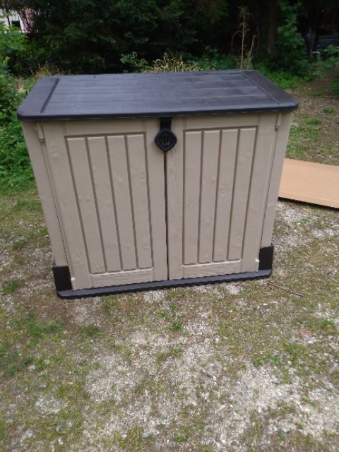 petite balade avant la pluie, j'ai acheté ce coffre qui va remplacer mon poulailler : tout en plastique il sera facile à nettoyer