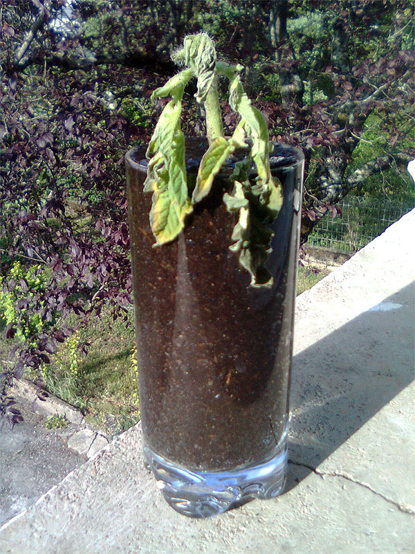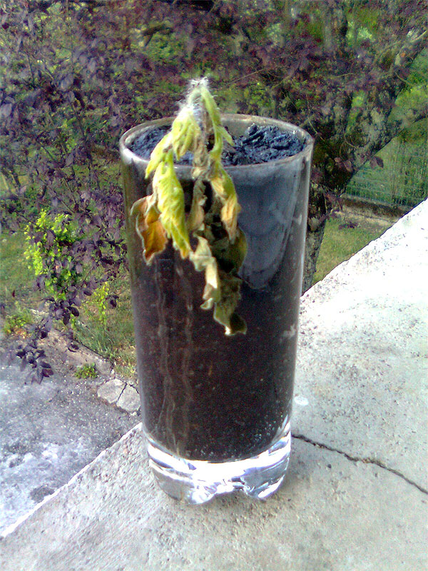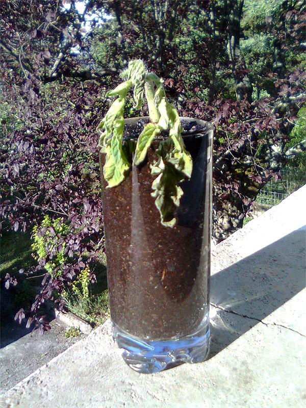 1 - L'idée de ne pas percer le verre (pour le sauver) n'a pas permis une bonne humidification de la motte de terre.