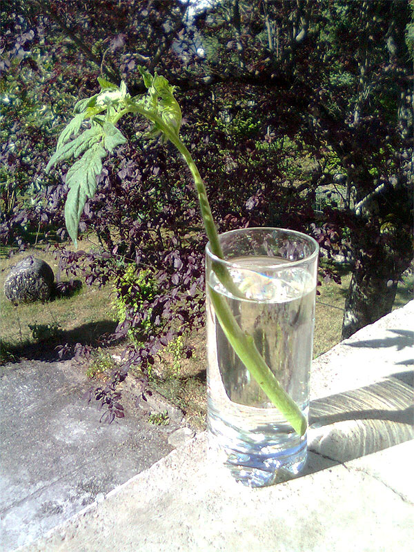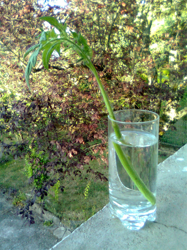 Je viens de bouturer un gourmand de tomate ; VERSION DANS L'EAU !