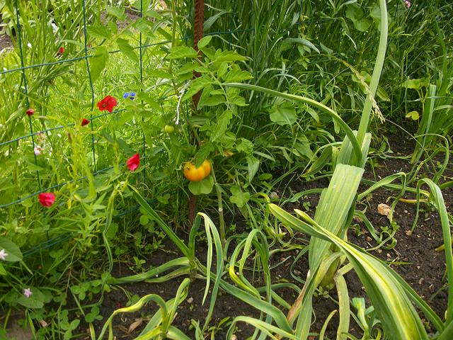 pluie intermittente, orage etc. rapide inspection au potager, pour vérifier que les plants ne présentent pas de carences . Les pluies successives lessivent le sol, désagrégeant engrais et éléments organiques. Pour qu'une plante puisse faire face aux maladies, il est impératif qu'elle soit bien nourrie. Surtout au moment des lessivages des sols.