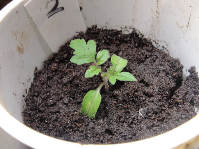 Après 12 jours dans le terreau à semis, les 15 variétés de tomates commencent à faire leurs vraies feuilles.